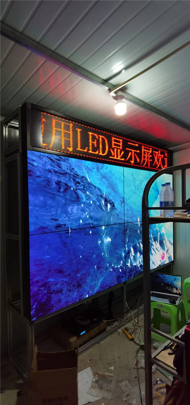 云南邵通永善縣某工地監(jiān)控室55寸3.5mm2X2+LED條屏+落地支架